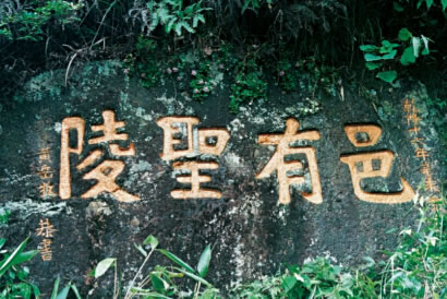 邑有圣陵位于炎陵故道,橋頭嶺下官壟口道旁,石壁上鐫刻乾隆十六年路碑“邑有圣陵”四個(gè)大字。炎帝去世后,人們把他安葬在鐘靈毓秀的“長(zhǎng)沙茶鄉(xiāng)之尾”。幾經(jīng)周折,終于來(lái)到一個(gè)嶠陽(yáng)嶺的地方。這里“四面嶄絕,鳥道羊腸”。站在嶠陽(yáng)嶺上,舉目南望,只見(jiàn)群山環(huán)抱之中,有一塊平展開(kāi)闊的原野。洣水三回九折,穿嶂過(guò)峽,奔騰而來(lái)。原野南端,層巒疊翠,虬木森森,煙云出沒(méi),氣象萬(wàn)千。認(rèn)為鹿原陂就是一塊富庶之地,至尊之地,文明發(fā)祥之地。辛勞一生的炎帝,應(yīng)該有這樣一塊安息之地。