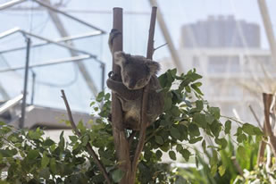 考拉館占地面積1400平方米,建筑面積600平方米,內(nèi)展廳、外展區(qū)、陽光溫室展區(qū)、體檢區(qū)、動物隔離治療區(qū)、桉樹冷藏室、桉樹處理區(qū)、人員進(jìn)出消毒池和更衣區(qū)和游客互動體驗區(qū)等功能區(qū)俱全。展廳具有溫度、濕度控制系統(tǒng),游客區(qū)和考拉生活區(qū)兩套完全獨(dú)立的新風(fēng)系統(tǒng)進(jìn)行環(huán)境控制,確保游客面空氣循環(huán)與考拉籠舍空氣循環(huán)不交叉。