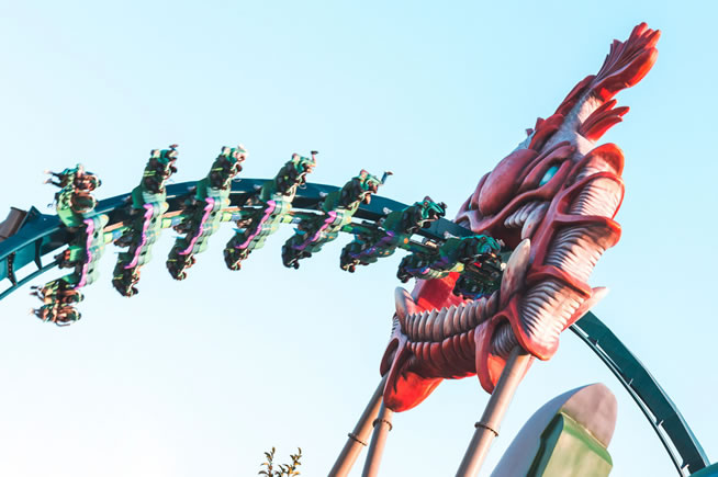 美好時光版的過山車非時光飛車莫屬,翻轉俯沖夠勁卻能穩(wěn)穩(wěn)的飛馳,墜落感在耳邊呼嘯,刺激感被歡樂的氣氛團團包圍。