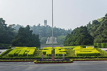 兩側(cè)的環(huán)陵大道可直達(dá)雨花臺(tái)主峰,主峰上矗立著一塊42.3米高的石碑,碑身正面鐫刻著鄧小平親筆題寫的"革命烈士紀(jì)念碑"七個(gè)金字,背面刻著紀(jì)念碑文。碑前還豎有一座高5.5米的烈士青銅塑像。在紀(jì)念碑南邊的山崗上還有一座呈"U "字型,頗具民族風(fēng)格的花崗巖結(jié)構(gòu)的大型建筑--"革命烈士紀(jì)念館"。館長(zhǎng)94米、寬49米,主堡高26米,建筑面積5900平方米,館內(nèi)陳列著烈士們的遺像、遺書和遺物等。