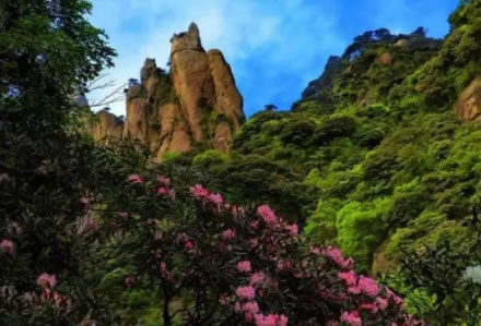 杜鵑山距茨坪西南面三十五公里,海拔1357米。主要由中峰 (揚(yáng)眉峰)、西峰(望指峰)、東峰(觀島峰)三大峰組成。遠(yuǎn)望猶如古代的筆架,故名筆架山。