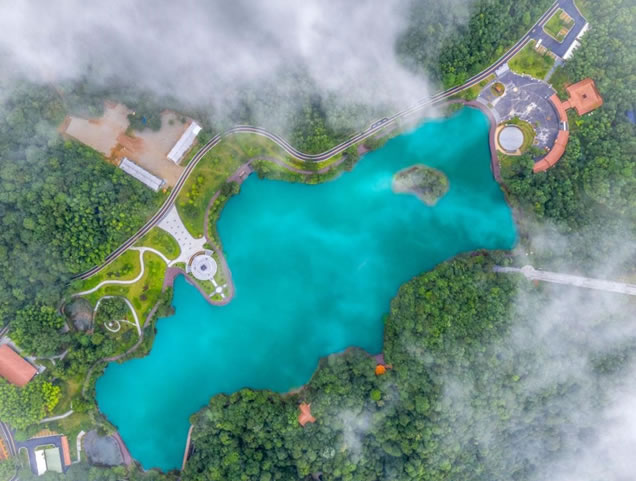 潭面波濤翻滾深不見(jiàn)底,似一飛龍?jiān)跍Y。潭的四周峭壁突兀,地形奇特,置身其間,如入仙境。