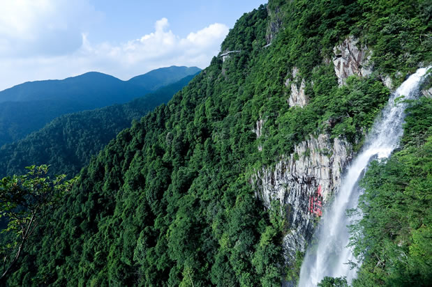 望天瀑,位于福鰲塘東北4公里處。在深山峽谷中瀑布飛流而下,站在瀑底潭邊仰望瀑布,只看見(jiàn)藍(lán)天白云,實(shí)為壯觀,故名“望天瀑”。