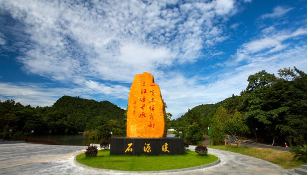 護(hù)源石是2017年紀(jì)念香港回歸20周年時(shí)所立,石碑上“一定要保護(hù)好東江源頭水”為周恩來(lái)總理的親筆題詞。1963年,香港遭遇了60多年來(lái)最嚴(yán)重的一次干旱,350萬(wàn)人的生活因缺水陷入困境。當(dāng)年12月,周恩來(lái)總理親自批示,撥專(zhuān)款用了11個(gè)月的時(shí)間在深圳建成了東深供水工程,把東江的水引到香港,從此結(jié)束了香港長(zhǎng)期缺水的歷史。護(hù)源石形狀像一只手掌,寓意用手護(hù)源,石頭高5.23米,與東江流域長(zhǎng)度523公里相對(duì)應(yīng),寬3米,代表贛、粵、港三地;護(hù)源石底座長(zhǎng)4.65米,與三百山到香港的距離465公里相對(duì)應(yīng);花壇采用圓形,寓意“圓圓滿(mǎn)滿(mǎn)”。