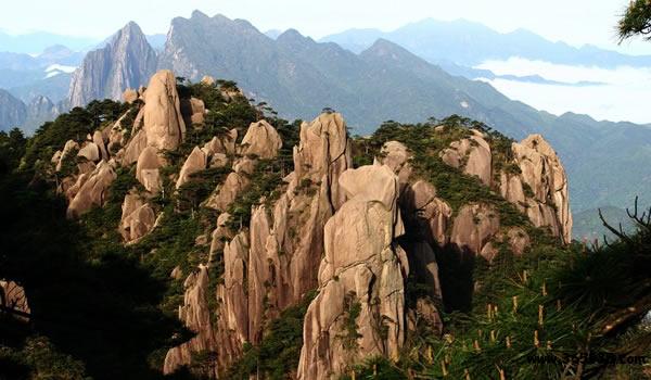 三清山:坐落于江西省東部門戶上饒市玉山縣與上饒德興市交接處。因玉京、玉虛、玉華“三峰峻拔,如三清列坐其巔”而得名。風(fēng)景區(qū)總面積229平方公里,最高峰玉京峰海拔1819.9米,為懷玉山脈的主峰。懷玉山因“天帝遺玉、山神藏焉”,風(fēng)光無限,別具精神而得名。三清山集天地之秀,納百川之靈,是華夏大地一朵風(fēng)景奇葩。她兼具“泰山之雄偉、黃山之奇秀、華山之險峻、衡山之煙云、青城之清幽”,被國際風(fēng)景名家譽之為:“世界精品、人類瑰寶、精神玉境”。她以梯云嶺、南清園、萬壽園、西海岸、玉京峰、陽光海岸、三清宮、玉零觀等十大景區(qū)引人入勝。山的東南麓水連三清湖,山光水色,溶洞奇石,美不勝收。1988年8月列為國家重點風(fēng)景名勝區(qū),2008年7月列為世界自然遺產(chǎn)地,F(xiàn)為國家5A級風(fēng)景旅游區(qū)、國家自然遺產(chǎn)、國家地質(zhì)公園、全國愛國主義教育示范基地和全國文明風(fēng)景旅游區(qū)示范點。