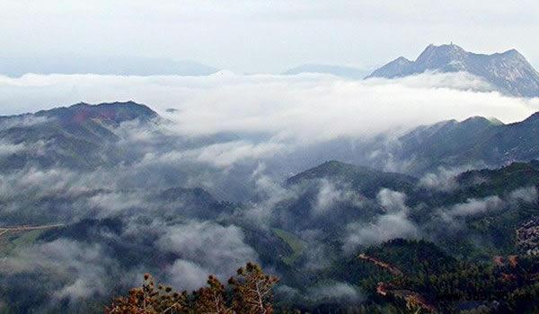 五府山:位于上饒縣南部,武夷山北麓。地處亞熱帶,氣候溫暖,雨量充沛,年平均氣溫在14—18℃之間,年平均降雨量在1880毫米,相對濕度為84%,一年無霜期為235天。五府山上的五府崗為上饒縣的最高峰。因其在月明風(fēng)清之夜,臨崗遠眺,舊制的江西“廣信府”、“饒州府”、浙江“衢州府”、福建“建陽府”、“南平府”等“五府萬家燈火盡收眼底”,五府山因此而得名。