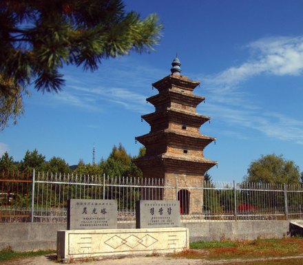 靈光塔,位于吉林省白山市長(zhǎng)白朝鮮族自治縣長(zhǎng)白鎮(zhèn)西北。靈光塔是一座典型的磚砌密檐樓閣式方形古塔,是渤海國(guó)仿唐建筑,始建于唐渤海年間(698年~926年),已有1300多年的歷史。靈光塔的原名早已失傳,今名“靈光塔”由清末長(zhǎng)白府第一任知府張風(fēng)臺(tái)命名。