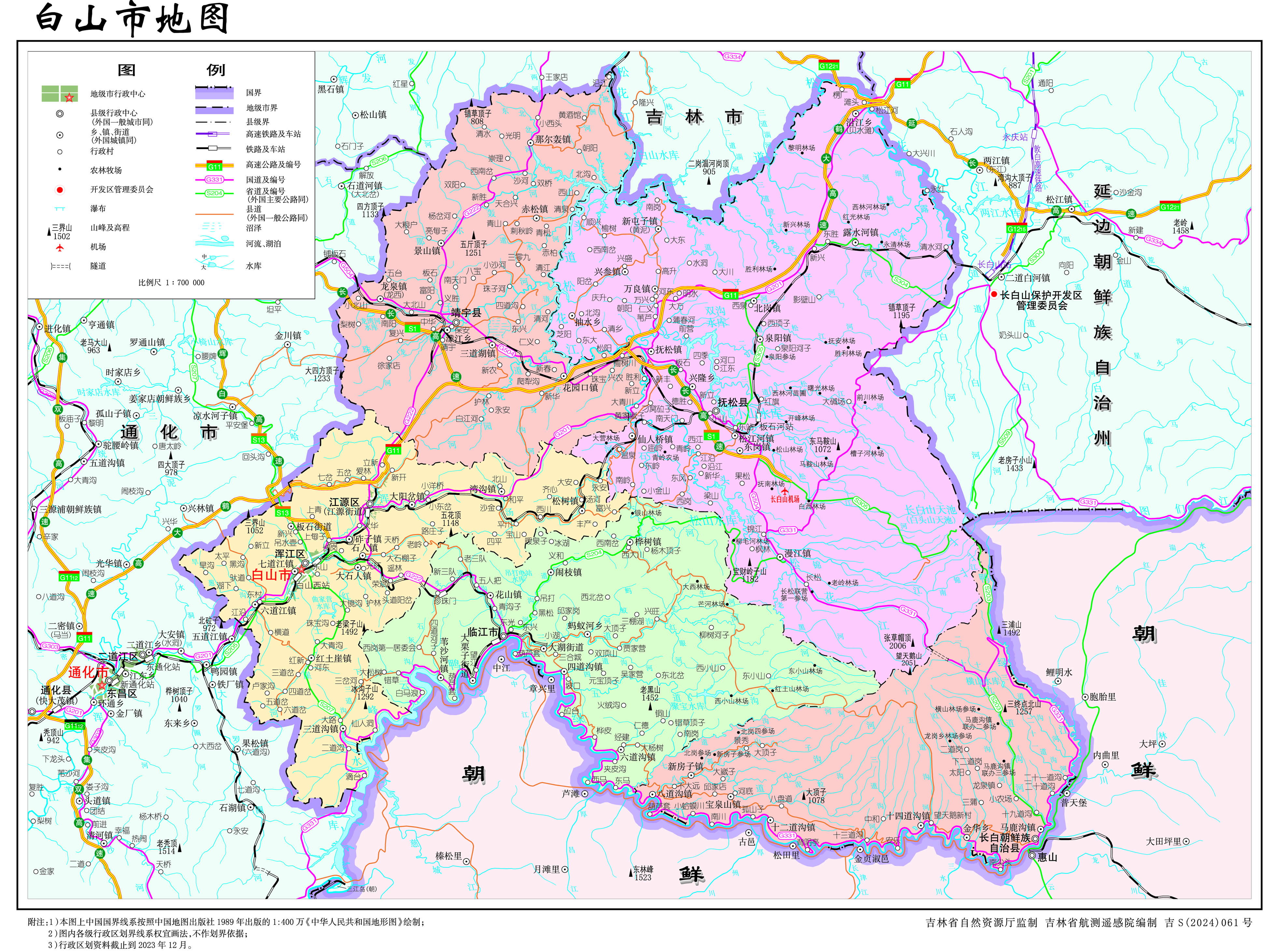 白山市轄2個(gè)市轄區(qū)、2個(gè)縣、1個(gè)自治縣,代管1個(gè)縣級(jí)市: