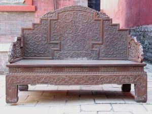 崇政殿室內的寶座、屏風等陳設,并非清太宗時期的原貌,而是乾隆十二年(1747年)根據(jù)皇帝的旨意重新設計制做的,堂陛之內的屏風寶座,是乾隆特命仿北京故宮乾清宮所用加以縮小精心制作的,寶座、屏風各以九條龍做為主要裝飾,全部罩以金漆,體現(xiàn)其唯一的使用者──皇帝的無上尊嚴。屏風上的四言十二句銘文,與乾清宮屏風上的完全相同 ,是康熙皇帝從古代經(jīng)書中摘出,做為自己和后世皇帝治理國家的座右銘鐫刻在御座之旁的。陳設在龍椅前后的鶴式燭臺、熏爐、塔式香亭、 端、“太平有象”等,都是乾隆年間宮中精制的琺瑯禮器,專用于皇帝御座周圍,既為熏香之用,也有驅邪諏吉的寓意,使得“真龍?zhí)熳印迸R朝理政之處更具有莊嚴神圣的氣氛。乾隆、嘉慶、道光幾位皇帝東巡盛京期間,都曾坐在這里接受群臣的朝賀叩拜,慶祝自己祭陵大典的成功。