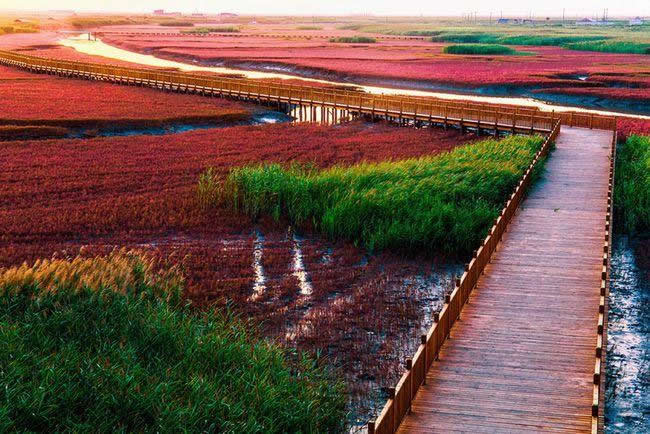 紅海灘國(guó)家風(fēng)景廊道它位于遼寧省盤(pán)錦紅海灘濕地旅游度假區(qū),南起二界溝混江溝大橋,北至紅海灘濕地旅游度假區(qū)接官?gòu)d大橋與旅游路接口,全長(zhǎng)18.115公里。是獨(dú)一無(wú)二的“世界紅色海岸線(xiàn)”,也被稱(chēng)為“中國(guó)最精彩的休閑廊道”和“中國(guó)最浪漫的游憩海岸線(xiàn)”。中國(guó)婚協(xié)授予了紅海灘國(guó)家風(fēng)景廊道“中國(guó)婚禮文化產(chǎn)業(yè)基地”榮譽(yù)。