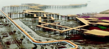 棧橋曲折綿長(zhǎng)與海相接、與天相連,像一艘大船正要揚(yáng)帆起航。游客漫步于上觀賞兩側(cè)的紅灘綠葦、聆聽(tīng)候鳥(niǎo)的百?lài)是暋⒏惺艽蠛5牟憠验,仿佛乘舟依水而行,每每流連忘返。身臨其境的讓人感受到“落霞與孤鶩齊飛,秋水共長(zhǎng)天一色”的唯美意境。