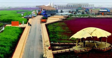 紅海灘四月初為嫩紅,漸次轉(zhuǎn)深,十月由紅變紫,最佳觀賞時(shí)間為五月至十月。這里魚(yú)肥蟹美,稻米飄香,海鷗與抽油機(jī)為伴,紅海灘與丹頂鶴相映,現(xiàn)代文明與原生文明共生。它以舉世罕見(jiàn)的紅海灘為特色,以全球保存最完好、規(guī)模最大的濕地資源為依托,以世界最大的蘆葦蕩為背景,與數(shù)以萬(wàn)計(jì)的珍稀水禽和一望無(wú)際的淺海灘涂構(gòu)成了一條生態(tài)風(fēng)景廊道。它左側(cè)是旖旎延綿的紅海灘,右側(cè)是一望無(wú)際的蘆葦蕩。在春夏時(shí)節(jié),它們紅綠相濟(jì);在秋冬時(shí)節(jié),它們金紅相映,一路貫通。