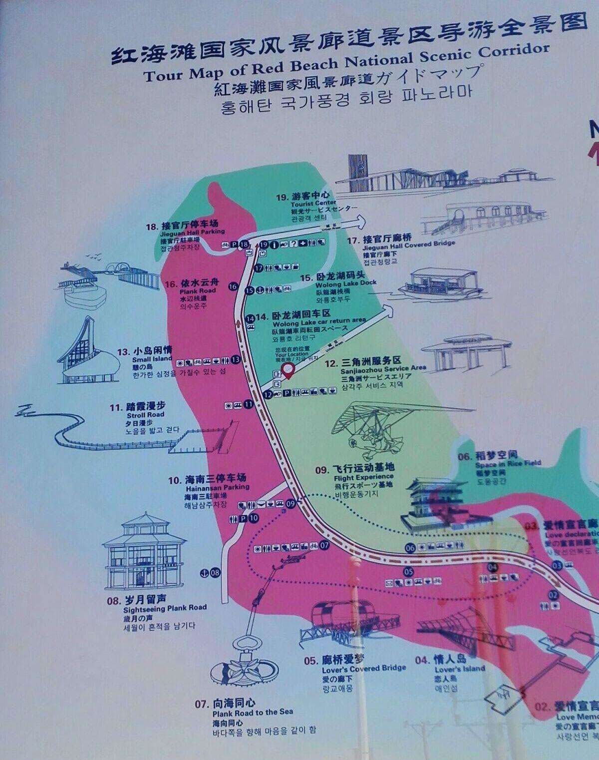 盤(pán)錦南—305國(guó)道—紅海灘大街—旅游路—新榮線(xiàn)—建海路—廊道三角洲大門(mén)