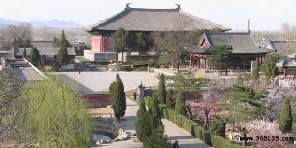 奉國寺:坐落在遼寧省義縣城內(nèi),始建于遼開泰九年(公元1020年)因殿內(nèi)塑有七尊大佛,又俗稱大佛寺。奉國寺由山門、牌坊、無量殿、鐘亭、碑亭、大雄殿、西宮禪院等古建筑構(gòu)成,占地3萬平方米,是一座宏偉壯觀,保存較為完整的古代寺院。大雄殿位于中軸線的北端,面寬9間,通長55米,進(jìn)深5間,通寬33米,總高度24米,建筑面積1800多平方米。它不僅是國內(nèi)遼代遺存最大的木構(gòu)建筑,因其大雄殿規(guī)模面積全國最大,又堪稱中國寺院第一大雄寶殿。
