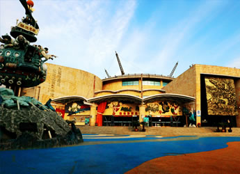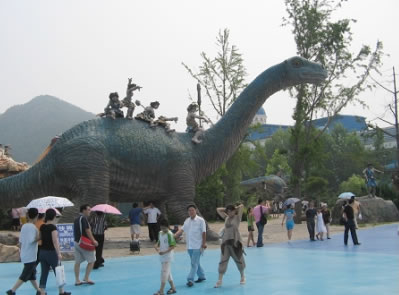 侏羅紀(jì)激流探險(xiǎn),總占地面積8600平方米,以一種時(shí)空穿插的景觀設(shè)計(jì)手法,將五種八只侏羅紀(jì)時(shí)期的恐龍置身于虛幻的遠(yuǎn)古村落中。載客古船,沿210米長(zhǎng),15米高的水道激流急下,沿途中,一只高9米,長(zhǎng)19.8米,重約8噸的亞洲最大的機(jī)械恐龍“巨無(wú)霸”,不時(shí)的向沖刺在激流中的游人搖頭擺尾,吼叫或噴水,載客古船激起的25米高的巨浪。 旅游船