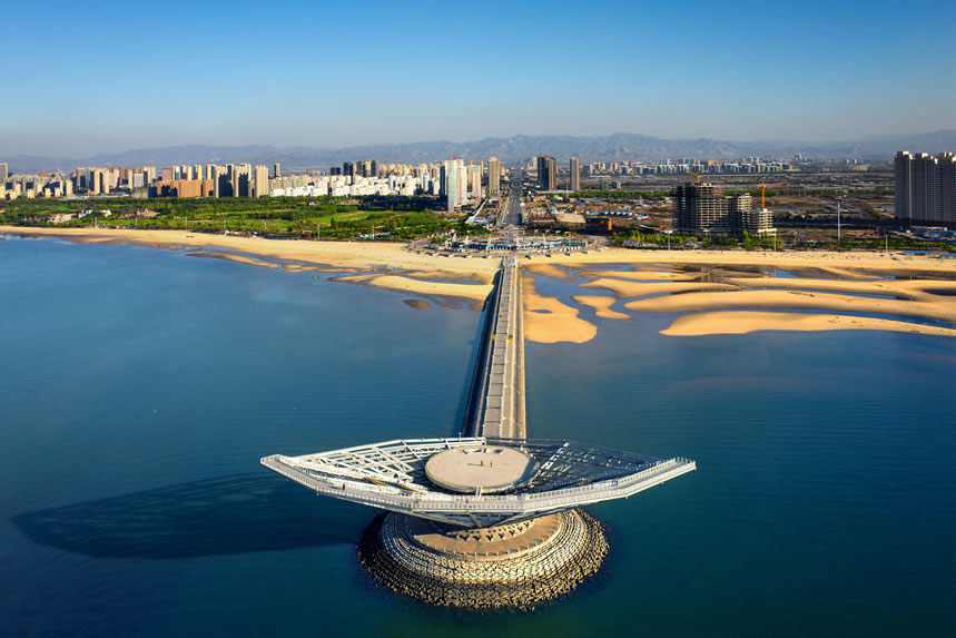 仙人島位于蓋州市九垅地鎮(zhèn)西海邊。仙人島又為陸連島,有大片沙堆積體與陸地相連,呈向西突出于海的岬角。岬角區(qū)南北寬約1公里,東西長約2公里,臨海為陡坡,平均高差10米。島的后方陸域平坦寬闊,為耕地和居民點(diǎn)。自半島北部岬角東北端往熊岳河口方向3公里岸段陸域平坦開闊,縱深大,加大水深條件良好,是較好的港址岸段。