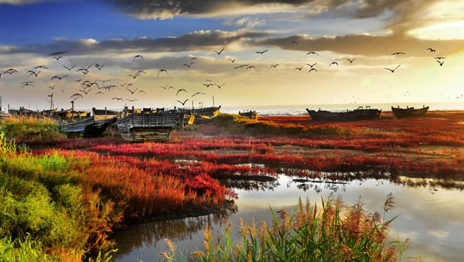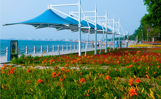 白沙灣黃金海岸(國家AAAA級風(fēng)景旅游區(qū))地處蓋州市歸州辦事處、九壟地辦事處西部,全長14.7公里,距蓋州市區(qū)46公里,距高速公路(熊岳站出口)8公里,濱海公路貫穿園區(qū)。面臨渤海,以海域風(fēng)光為主,海岸蜿蜒,沙灘細(xì)軟,形如新月,景色壯麗。白沙灣是一個(gè)在綠樹掩映之下的海濱浴場,人稱“東北第一灘”。