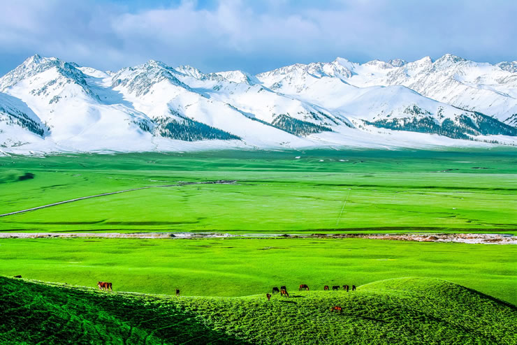 - 特色:那拉提的標(biāo)志性景觀,海拔2200米,是一片廣闊的草原,四周被雪山環(huán)繞,仿佛置身于空中。