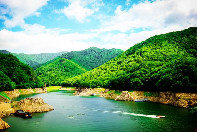 關(guān)山湖旅游風景區(qū)位于遼寧省東南部本溪滿族自治縣境內(nèi),“關(guān)門山原址”所在地,素有“小黃山”“小桂林”之稱;面積三十多平方公里,水面五千余畝;景點近百處,森林覆蓋率達97.5%以上,夏季平均濕度:68,負氧離子含量每立方厘米3萬左右。關(guān)山湖旅游風景區(qū)是“全國楓葉之鄉(xiāng)·本溪縣”唯一集"山、水、楓、湖、船"為一體的自然風景名勝區(qū)。關(guān)山湖宛如一塊絕美碧玉鑲嵌于山水畫卷之中,其“山、水、霧、花、楓”之五美體現(xiàn)的淋漓盡致,難怪游人發(fā)出“不到關(guān)山湖,枉為關(guān)山客”的慨嘆。