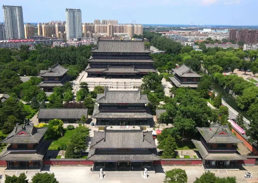青石牌坊 → 天王殿 → 大雄寶殿 → 西方三圣殿 → 東方三圣殿 → 白塔