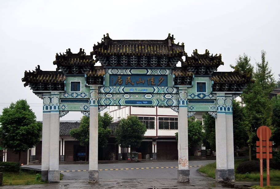 夕佳山民居,位于四川省宜賓市江安縣夕佳山鎮(zhèn),初為明萬歷四十年(1612年),錫姓人家所建,故稱“蜴家山”。清乾隆時,錫家搬遷,民居賣與黃篆庵,經黃氏后代逐年整修、擴建,到清末形成規(guī)模宏大的莊園式住宅。因這一帶風景優(yōu)美,根據民間“三奇”(奇書、駿馬、佳山)中的佳山而得名“夕佳山”。經清、民國期間幾次較大的修葺,至今保存完整。建筑面積10056平方米。夕佳山民居坐南向北,南依安遠山脈,北臨層層淺丘,整個民居建筑在四個臺基之上,為四合院式,縱深三進,有11個天井。以正門、前廳、堂屋為中軸線向兩翼展開,布設有東花園、西花園、后花園。民居建筑除固若金湯的圍墻和四角的碉樓為石砌外,其余民舍均系懸山穿斗木質結構,青瓦蓋頂而成,共房舍123間。夕佳山民居的建筑發(fā)展史就是明末以來四川民間的一部社會史、風俗史。夕佳山民居被譽為“中國民間建筑活化石”“神州民間建筑精粹”,對研究中國民間建筑史、民間藝術史、民間風俗史和川南社會史都具有極高的價值。民居四周分布大量楨楠,并群居著上萬只國家二級保護動物——鷺鷥鳥,形成了中國罕見的“天然鷺鳥公園”。