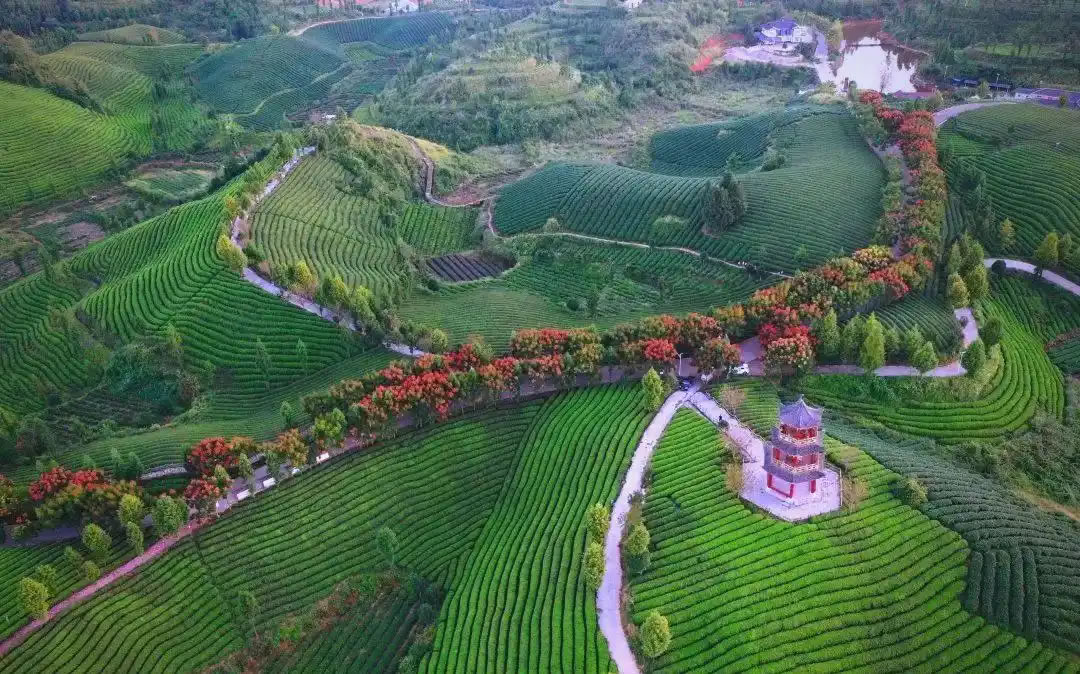 - 九堡十三彎:茶樹(shù)漫山遍野,像大地鋪了層綠毯,樹(shù)木錯(cuò)落其間,林茶相間。