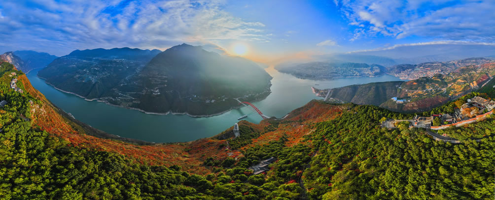 特色標簽:文峰觀、沿山脊長廊、俯瞰長江、生態(tài)防護、道教體驗、紅葉季景觀。