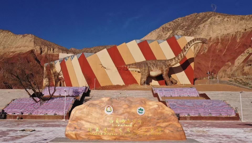 - 核心特色:以白堊紀恐龍足印群為核心,揭露面積2800平方米,含11類150組1831個足跡,最大蜥腳類足印長150厘米、寬120厘米,步幅375厘米,創(chuàng)世界之最。配套恐龍臥跡、尾部拖痕、糞跡化石及蘭州龍、劉家峽黃河巨龍等骨骼化石,地質(zhì)博物館、5D影院、游步道等設施完善,兼具科研、科普與旅游價值。