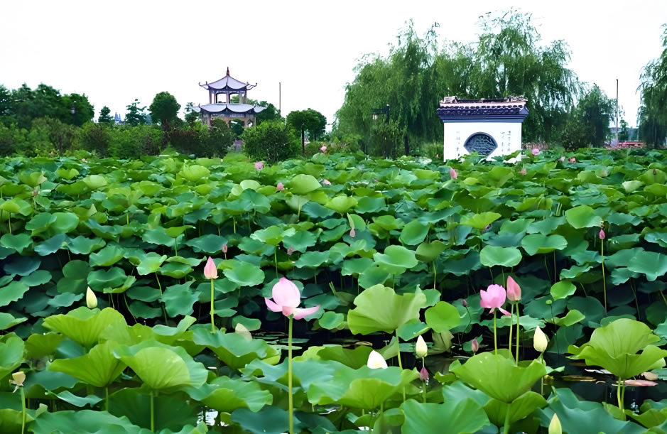 - 藕池文化園:核心賞荷區(qū),種植120余種荷花,夏季荷花盛放時形成壯麗景觀,曾現(xiàn)罕見并蒂蓮,設有8米高“荷花仙子”雕塑及觀景亭。