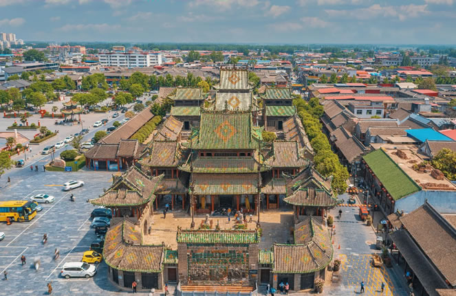 - 特色:始建于清乾隆二十一年(1756年),歷時(shí)136年竣工,占地10885.29平方米,現(xiàn)存亭臺(tái)樓閣130余間。融合宮殿、廟宇、商館、民居園林風(fēng)格,以“三雕”(石雕、木刻、磚雕)和“三絕”(琉璃照壁、懸鑒樓戲臺(tái)、春秋樓遺址)聞名,是晉商文化與中原建筑藝術(shù)的巔峰之作。
