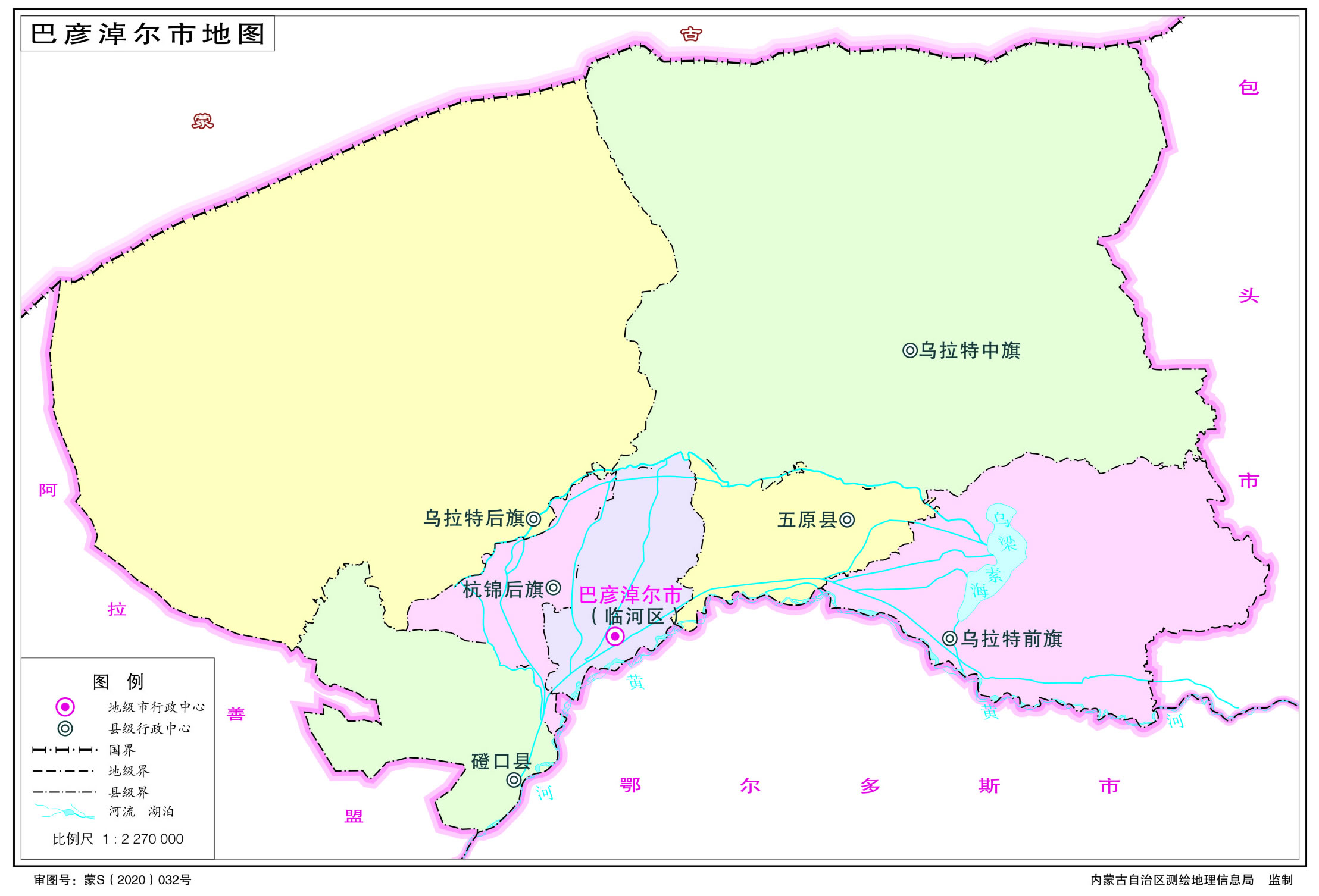 2003年12月1日,國務(wù)院批準(zhǔn)撤消巴彥淖爾盟和縣級(jí)臨河市,改設(shè)立巴彥淖爾市和臨河區(qū)。巴彥淖爾市下轄杭錦后旗、烏拉特后旗、烏拉特中旗、烏拉特前旗、五原縣、磴口縣和臨河區(qū)7個(gè)旗縣區(qū)和1個(gè)國家級(jí)經(jīng)濟(jì)技術(shù)開發(fā)區(qū)、1個(gè)國家農(nóng)業(yè)高新技術(shù)產(chǎn)業(yè)示范區(qū)、1個(gè)常年開放陸路口岸。
