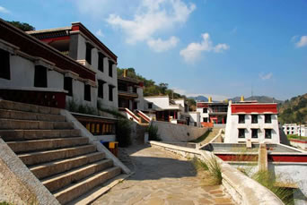 現(xiàn)存六大經(jīng)堂為蘇古沁殿、洞科爾殿、卻伊日殿(顯教經(jīng)堂)、當(dāng)圪希德殿、阿會(huì)殿(密宗經(jīng)堂)、日木倫殿(菩提道學(xué)經(jīng)堂)等。蘇古沁殿為全寺集會(huì)誦經(jīng)之所。這些殿宇規(guī)模宏大,均為典型的藏式建筑群。殿內(nèi)塑像、壁畫(huà)、唐卡(卷軸佛畫(huà))俱全,各殿各有特色,或立高達(dá)十米的釋迦牟尼銅像,或供高達(dá)九米的黃教始祖宗喀巴銅像,或護(hù)法金剛像,或供奉白度母和綠度母塑像等。三座活佛府邸在阿會(huì)殿的南面,其中洞科爾活佛府規(guī)模宏大,為第二世活佛熱西尼瑪于乾隆四十九年(公元1784年)所建。左右是接待多倫諾爾匯宗寺甘珠爾瓦呼圖克圖和章嘉國(guó)師而建造的兩座府邸。