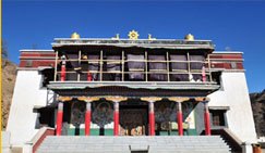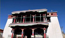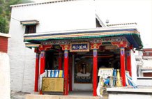 原名努尼殿,是供僧人靜坐休持的殿,用于喇嘛們以逐漸減少飲食,靜坐默誦,力圖不食不語(yǔ)的修行方式去解脫超度眾生靈。后來(lái)毀于文革動(dòng)亂。2003年國(guó)家撥款在遺址上恢復(fù)并擴(kuò)建此殿,2005年9月開(kāi)始對(duì)外開(kāi)放,全殿上下兩層,一樓為佛堂,供有千手千眼觀音像、六世班禪大師、宗喀巴大師像,正中供奉的三世佛為銅鑄鍍金佛像。墻上所繪壁畫(huà)是藏傳佛教九大佛寺壁畫(huà)。