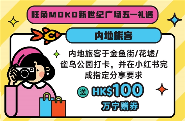 針對游客需求的變化,香港政府推出相關(guān)扶持政策,以支持區(qū)域特色打卡發(fā)展。以香港最著名的旅游區(qū)、購物區(qū)和美食區(qū)旺角為例,為了迎接內(nèi)地游客,香港政府在金魚街、花墟、雀仔公園設(shè)置不同打卡裝置。當(dāng)?shù)氐纳虉鲆餐ㄟ^各種舉措歡迎內(nèi)地游客。旺角地標(biāo)MOKO新世紀廣場面向內(nèi)地游客推出專享優(yōu)惠“日夜打卡繽紛禮”,于以上景點打卡分享到小紅書社交媒體及完成指定要求,可免費領(lǐng)取總值100港幣的萬寧贈券一份,一鍵PO出雙倍快樂。