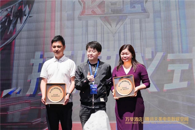 騰訊互娛天美L1工作室王者榮耀全國大賽負(fù)責(zé)人唐然上臺(tái),授予了萬斐酒店騰訊天美電競(jìng)數(shù)娛空間第九屆王者榮耀全國大賽——浙江省賽官方指定舉辦方,以及杭州賽區(qū)唯一指定總賽點(diǎn)的榮譽(yù)。由西湖文旅旅游發(fā)展有限公司副總經(jīng)理任亮,和上海歐愉科技總經(jīng)理史央清上臺(tái)接受授牌。