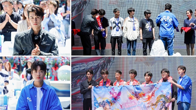 第九屆王者榮耀全國大賽——杭州賽區(qū)出征儀式(由2位種地吧少年為出征選手披上肩帶,并授予旗幟,出征儀式結(jié)束后,2位少年為選手加油打氣)