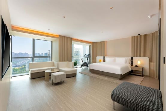 酒店所有的客房均配有健身器材及榮獲紅點(diǎn)設(shè)計(jì)大獎(jiǎng)的香薰睡眠燈,同時(shí)配備的華為客控系統(tǒng)全方位提升智能化服務(wù)體驗(yàn),也是華為客控系統(tǒng)應(yīng)用到酒店行業(yè)的全球首次嘗試。整個(gè)客房輕松自然的設(shè)計(jì)、親膚舒適的寢具及多感官的助眠體驗(yàn),從視覺、聽覺等多方面為你營(yíng)造一個(gè)良好的舒睡環(huán)境,緩解旅途壓力。