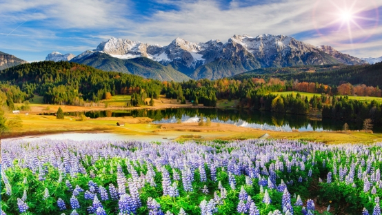 4.雪山濕地花海(雪山、濕地、花海,每一個景在這里都能看到。蜿蜒的溪流清澈見底,橫穿公園,澆灌著大片的牧草,木質(zhì)籬笆圍繞著牛群、馬群。溪流在有些地方會穿過木質(zhì)籬笆在外部流淌再流入濕地,使得人們可以近距離觸摸冰涼的溪流。)