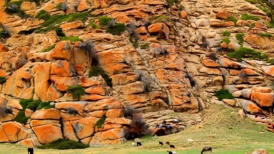 6.伊吾紅石峪(伊吾前山鄉(xiāng)北部山地中,背風(fēng)坡的山地草原,有一片罕見的花崗巖山體,被凜冽的北風(fēng)風(fēng)化成丘陵狀,巨大的花崗巖則破碎成一個個的小塊,花崗巖破碎成類似于黃山飛來石的感覺!)