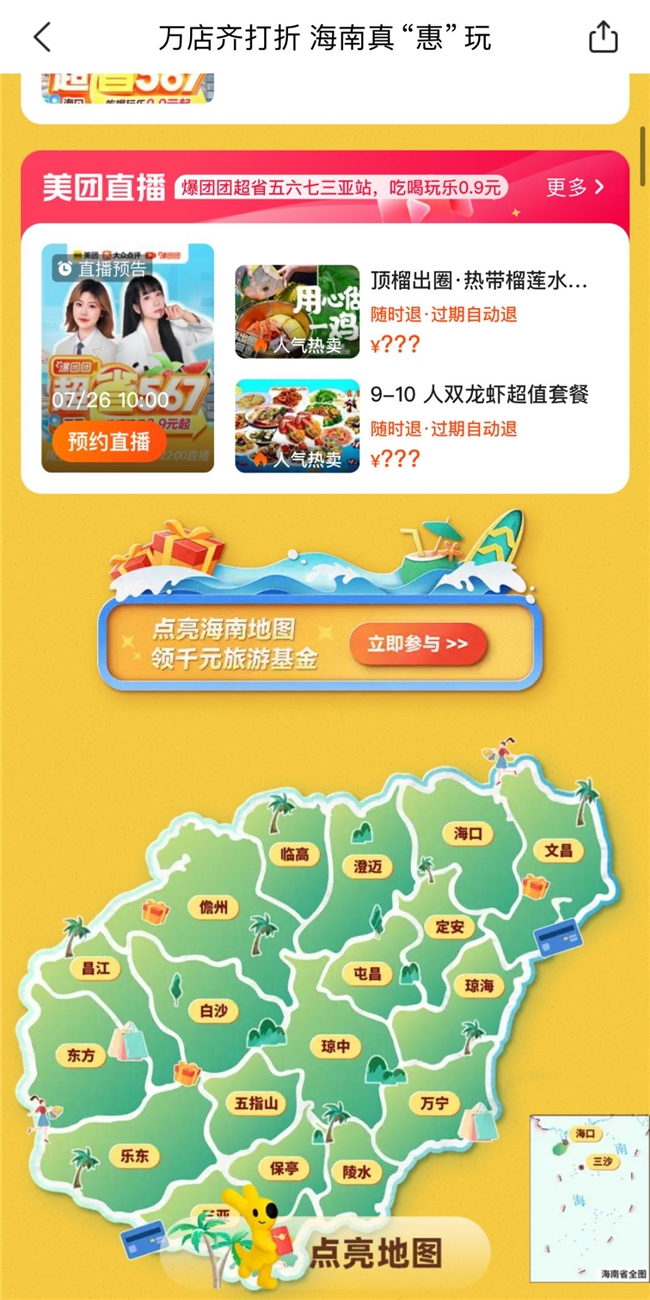 隨著暑期旅游高峰的到來,海南省旅游和文化廣電體育廳攜手美團(tuán)共同打造的“萬店齊打折·海南真'惠’玩”活動正在如火如荼地進(jìn)行中。