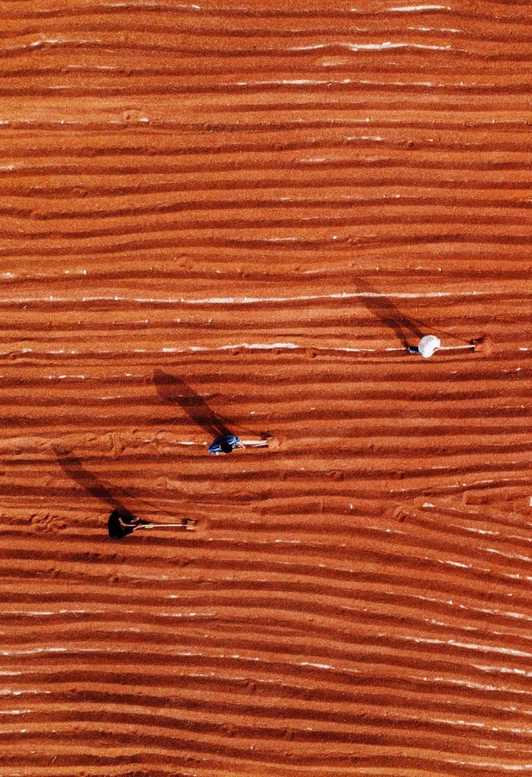 俯瞰紅層大地,猶如畫家恣意揮灑的畫作。或赤紅或斑斕的色彩,渲染出熱烈的氛圍。由于少有植被保護(hù),紅色的巖層暴露在空氣中,因而經(jīng)常受到風(fēng)化作用的剝蝕,永遠(yuǎn)呈現(xiàn)出新鮮的紅色;哪貛СR姷募t柳,耐鹽,耐堿,耐干旱,根系可達(dá)地下30多米,給荒涼點(diǎn)染出生命的色彩。