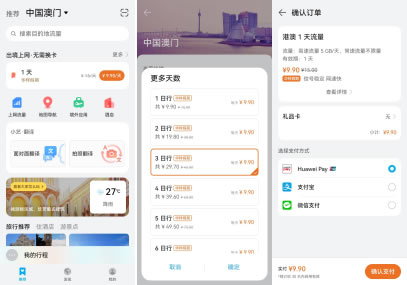 華為天際通無需更換SIM卡,可一鍵享受全球100+國家及地區(qū)的網絡直連服務,并在國慶期間推出了9.9元包天的流量套餐,即使長時間境外游,也可以選擇3天或7天的流量套餐,滿足各種出行需求。港澳活動套餐每天最高提升至6GB,讓你上網流量不受限。