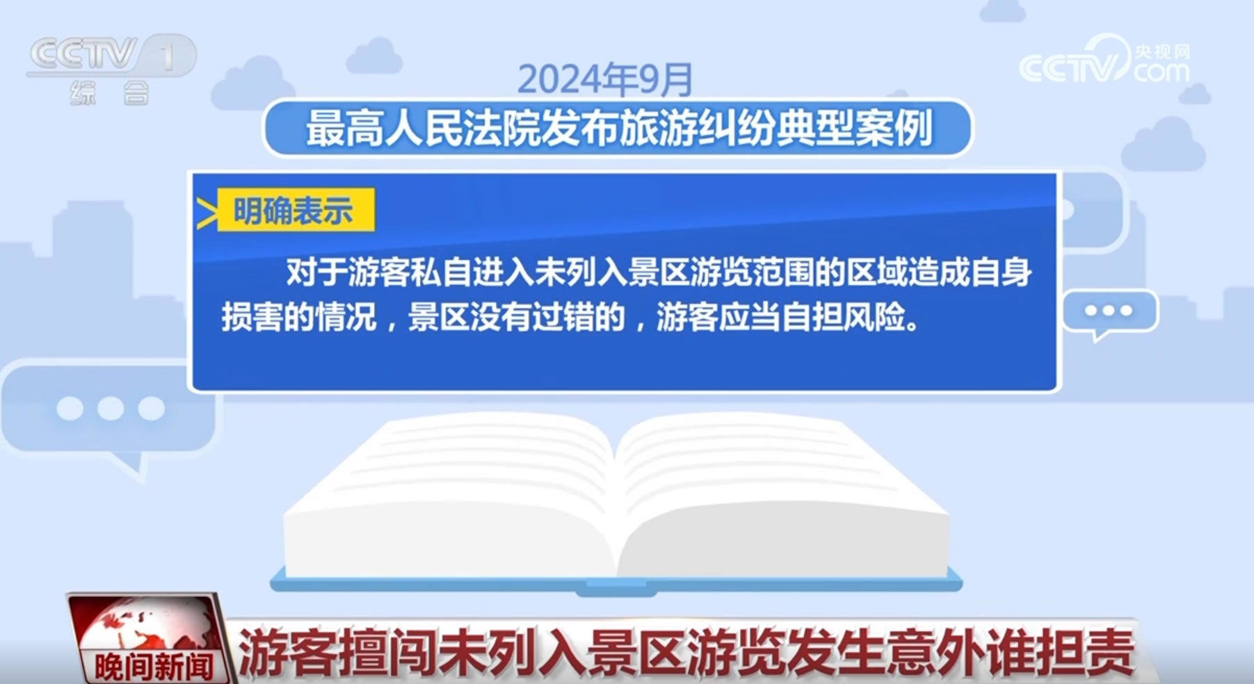 今年9月,最高人民法院發(fā)布旅游糾紛典型案例,明確表示:對于游客私自進(jìn)入未列入景區(qū)游覽范圍的區(qū)域造成自身損害的情況,景區(qū)沒有過錯的,游客應(yīng)當(dāng)自擔(dān)風(fēng)險。