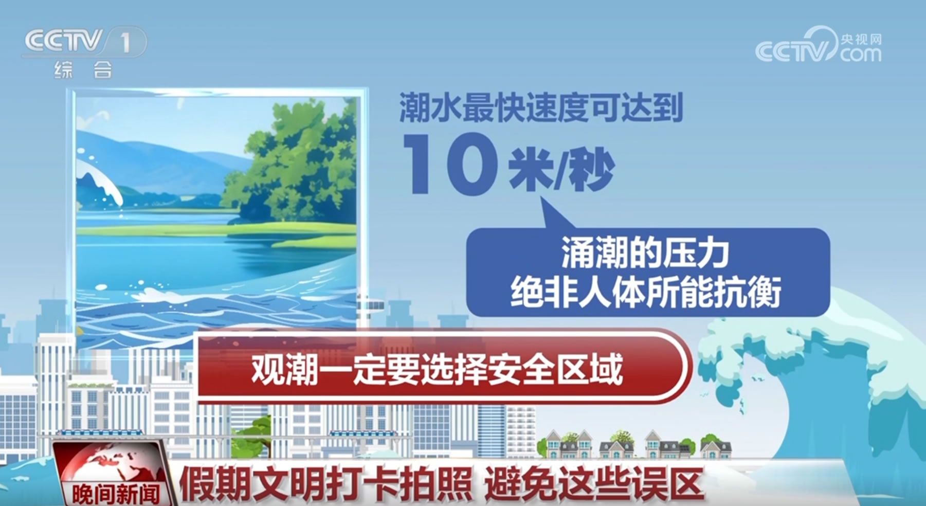 誤區(qū)一:觀潮離近點(diǎn)拍照沒事,潮水到來前跑回大堤就行。實(shí)際上,潮水最快速度可達(dá)到10米/秒,涌潮的壓力也絕非人體所能抗衡,因此觀潮一定要選擇安全區(qū)域。