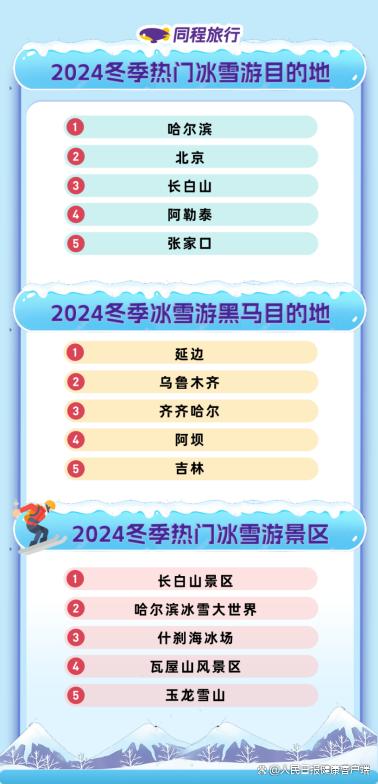 同程旅行2024冬季冰雪游趨勢報告中的部分排名。同程研究院 圖