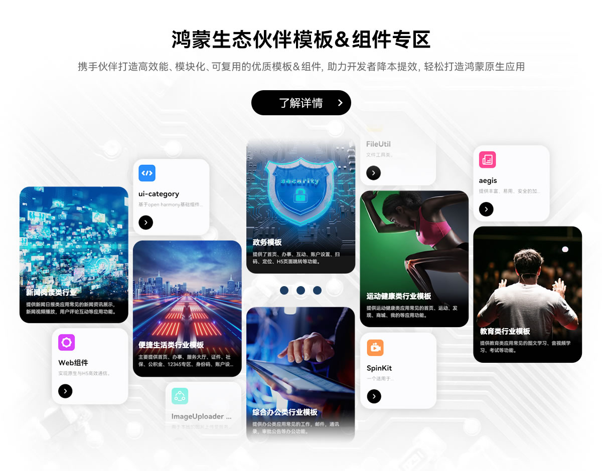 除豐富的行業(yè)模板資源外,鴻蒙生態(tài)伙伴模板&組件專區(qū)還提供了大量通用組件,這些組件涵蓋了開發(fā)者在開發(fā)環(huán)節(jié)中的各種常見功能,如UI組件提供了豐富的界面元素,讓開發(fā)者能夠快速搭建出美觀、易用的應(yīng)用界面;基礎(chǔ)工具類組件則提供了文件處理、網(wǎng)絡(luò)通信、數(shù)據(jù)加密等基礎(chǔ)功能,為應(yīng)用的安全性和穩(wěn)定性提供了保障等等。讓開發(fā)者能夠輕松實現(xiàn)復(fù)雜的功能需求。