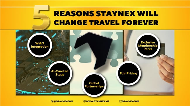 作為旅游行業(yè)的先驅,Staynex 將數(shù)字技術與現(xiàn)實世界的專業(yè)服務無縫融合,重新定義探索世界的方式。通過獨特的 Web2.5 戰(zhàn)略,打造了獨家合作伙伴關系與企業(yè)聯(lián)盟,為酒店及度假村預訂提供無與倫比的價值與優(yōu)惠。 整合了 Web3 技術和人工智能,具有真實世界資產(RWA)層。通過 “權益池”(Stake & Claim Pool)的經濟收益模式。全球 250 多萬家酒店和服務式公寓達成合作,提供專享價格。