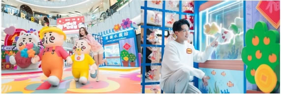 “貨架”上掛滿一包包金魚小袋,讓人瞬間仿若置身于金魚街。厚面水族館萌趣十足的金魚在水中自在游動(dòng),傳遞著新春金玉滿堂的祝福。悠閑逛完金魚街的厚面父子,大手拉小手開(kāi)心來(lái)到MOKO 準(zhǔn)備買買買。