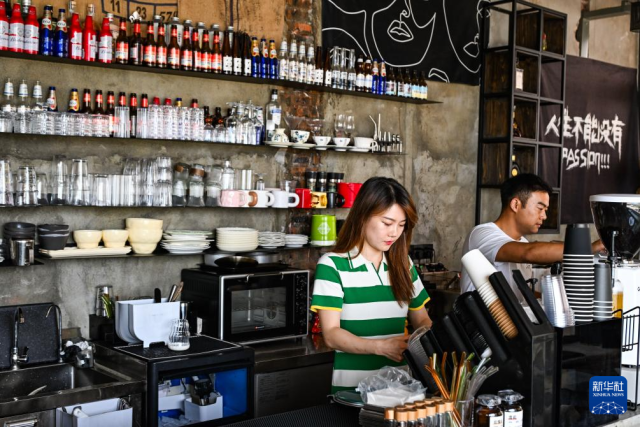 6月11日,重慶巫山一飲品店工作人員在調(diào)制飲品。