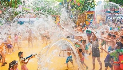 娛水是夏日避暑游的重要內(nèi)容。多地水公園緊扣年輕游客需求,創(chuàng)新娛水體驗(yàn),從原汁原味的薩瓦迪卡電音派對(duì)、泰式潑水大巡游到椰林集市、泰式美食街和“泰酷辣”NPC互動(dòng),沉浸式還原東南亞度假風(fēng)情,滿足年輕游客對(duì)異域文化與社交打卡的雙重需求。武漢瑪雅海灘水公園的音樂潑水狂歡、成都瑪雅海灘水公園的“泰POP親子潑水盛典”將東南亞風(fēng)情與水上娛樂結(jié)合。南京瑪雅海灘水公園的“泰式蹦迪”、落日音樂會(huì)和重慶瑪雅海灘水公園的“三大潑水玩法”,營(yíng)造了體驗(yàn)新場(chǎng)景,受到游客喜愛。